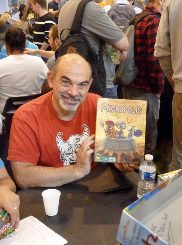 Le King des dominos est fier de sortir de son sac et de me présenter la boite illustrée par Camille Chaussy de son nouveau jeu Micropolis créé avec son compère Charles Chevallier et à paraître chez Matagot pour Cannes prochain.