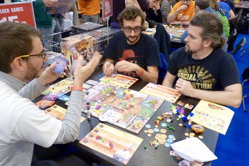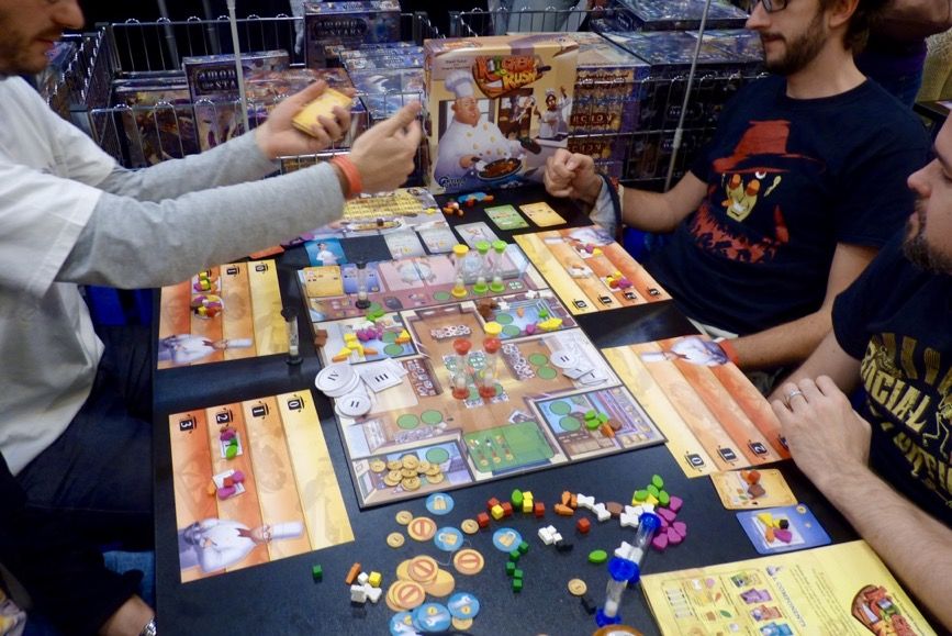 L'accueil est cool et souriant. On aperçoit au fond du stand Sébastien Pauchon qui discute de son futur jeu, avec Hadi Barkat, à venir chez l'éditeur suisse pour 2018.