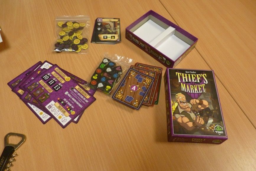 De retour à l'auberge, TGTB&TM nous propose de jouer à Thief's Market un jeu de Dave Charlker chez TMG qu'il a récupéré à sa Mathtrade.
