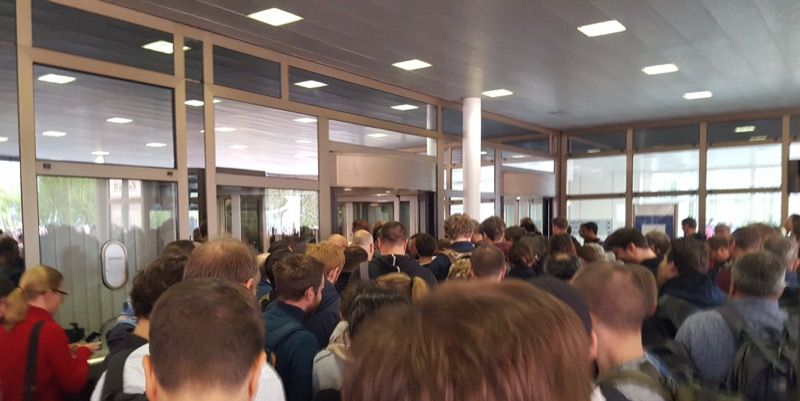 A 10 minutes près tu tombes dans les bouchons de la Norberstasse et tu te retrouves dans la vague 2 à l'extérieur de l'entrée pour le hall 1...