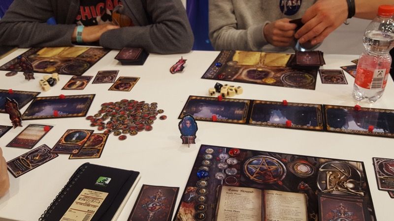 On se rabat sur le stand de White Wizard Games (Star Realms, Epic Card...) pour jouer à Sorcerer un jeu de card drafting de Peter Scholtz repéré par Cyril.