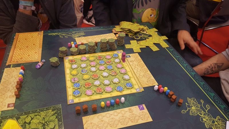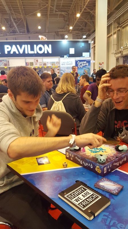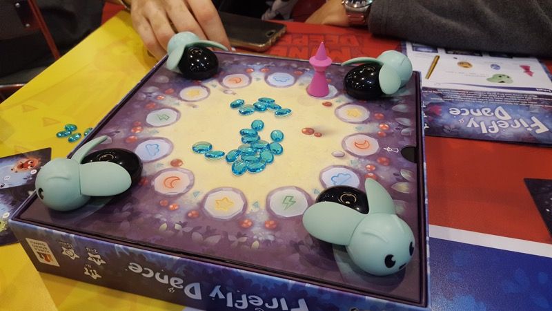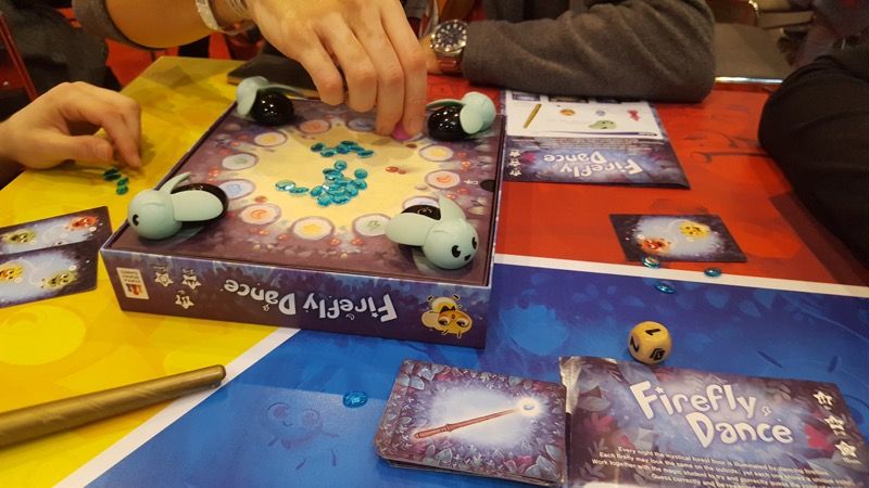Comme on est bien sur le stand, qu'on aime beaucoup le Pavillon coréen et qu'on trouve souvent de la place pour jouer on enchaine avec Firefly Dance un jeu de Josep M.Allué (l'auteur de Baobab et surtout de Kikou le coucou As d'Or enfant 2017) chez Korea Boardgames.