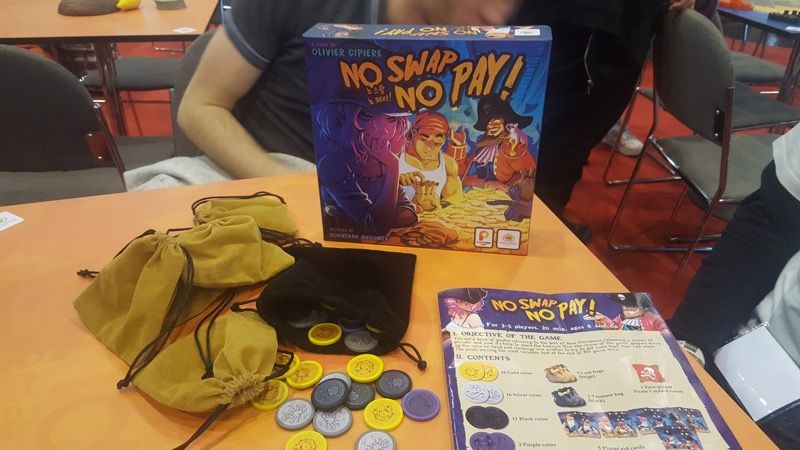 Une nouvelle table pour un nouveau jeu : No Swap, no Pay ! un jeu d'Olivier Cipière toujours chez Mandoo Games. Un jeu de card drafting avec du bluff et du guessing. On commence la partie en se disant que le jeu n'est pas terrible et plus on continue à jouer plus on comprend les finesses du jeu. Une belle surprise !