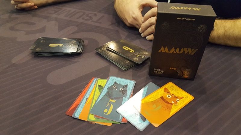 Pendant notre partie de 13 couronnes, une petite boite noire et des cartes tarot de chats me font de l'oeil. Je propose au reste de la Team de s'asseoir pour essayer le jeu.
