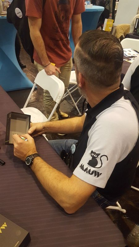 En lien direct par sms avec notre éclaireur Cyril, déjà dans le Messe avec son badge presse, on récupère enfin une table de Rune Stones.