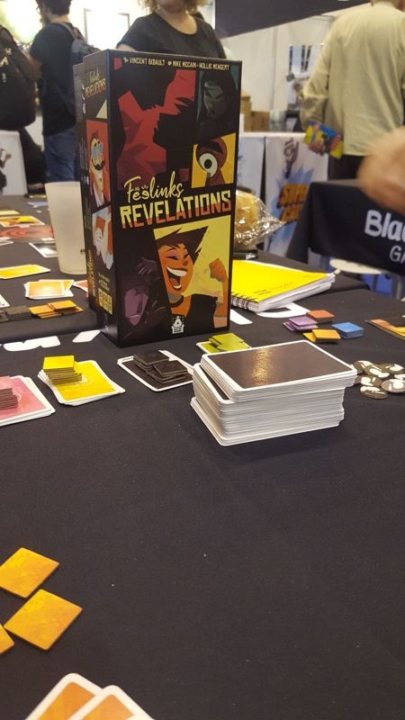 Fin de journée, c'est bientôt la fermeture du salon mais Cyril tient absolument à nous faire découvrir Feelinks Revelations le jeu de Vincent Bidault chez Act In Games sur le stand de Blackrock.