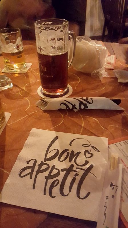 Ce soir pour nous faire plaisir, on nous sort les serviettes en papier de circonstance. Doivent pas voir souvent des français dans le coin...