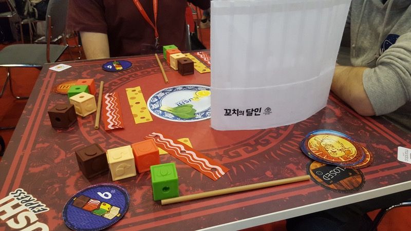 Il y a toujours un jeu foufou chez les coréens. Il y a quelques années c'étaient Coconuts ou Toc Toc Woodman et bien pour cette fois ce sera Kushi Express du célèbre auteur Yohan Goh (Fold it, Battlefold, magic Fold) chez Mandoo Games et illustré par... Vincent Dutrait.