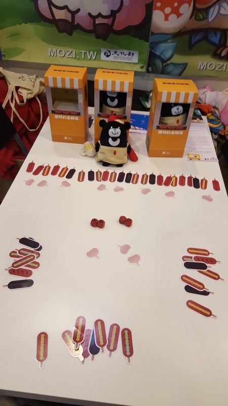 En face du stand coréen on trouve le petit stand de Mozi Games pour essayer Beeru and Sausages, un jeu à partir de 5 ans qui nous intéreassait Cyril et moi.