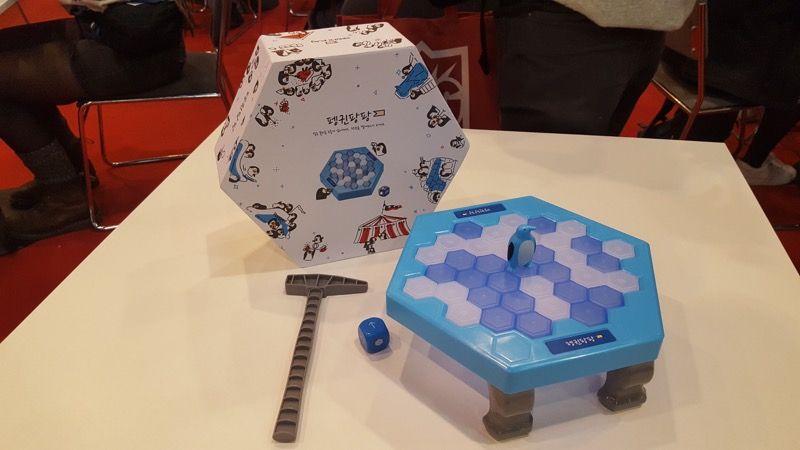 On retourne en face car on a repérér une famille qui jouait à un jeu de Toc Toc : Penguin Trap !