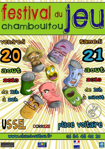 Et oui, après le succès du précédent Festival Chamboultou en août 2009, où vous étiez plus de 2000 visiteurs sur les deux jours, ce festival récidive cette année, et ça se passera à Ussel (du côté de Clermont-Ferrant), le vendredi 20 et samedi 21 août 2010, place Voltaire.