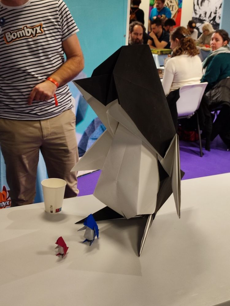 Sur le stand Bombyx, l'origamiste Pierre-Yves Gallard nous fait une démonstration de son talent en grandeur nature.