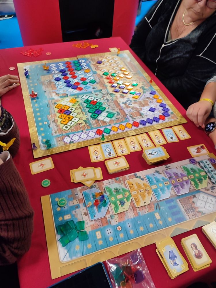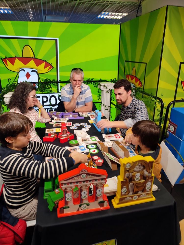 Concernant les jeux découverts aujourd'hui, j'ai vraiment bien aimé Phantom Ink chez Gigamic qui renouvèle bien les jeux de déductions de mots et Trio le futur jeu de cartes familial chez Cocktail Games. Je reste également très intrigué par Tiwanaku chez Sit Down! dont j'attends une partie pour me faire un véritable avis.