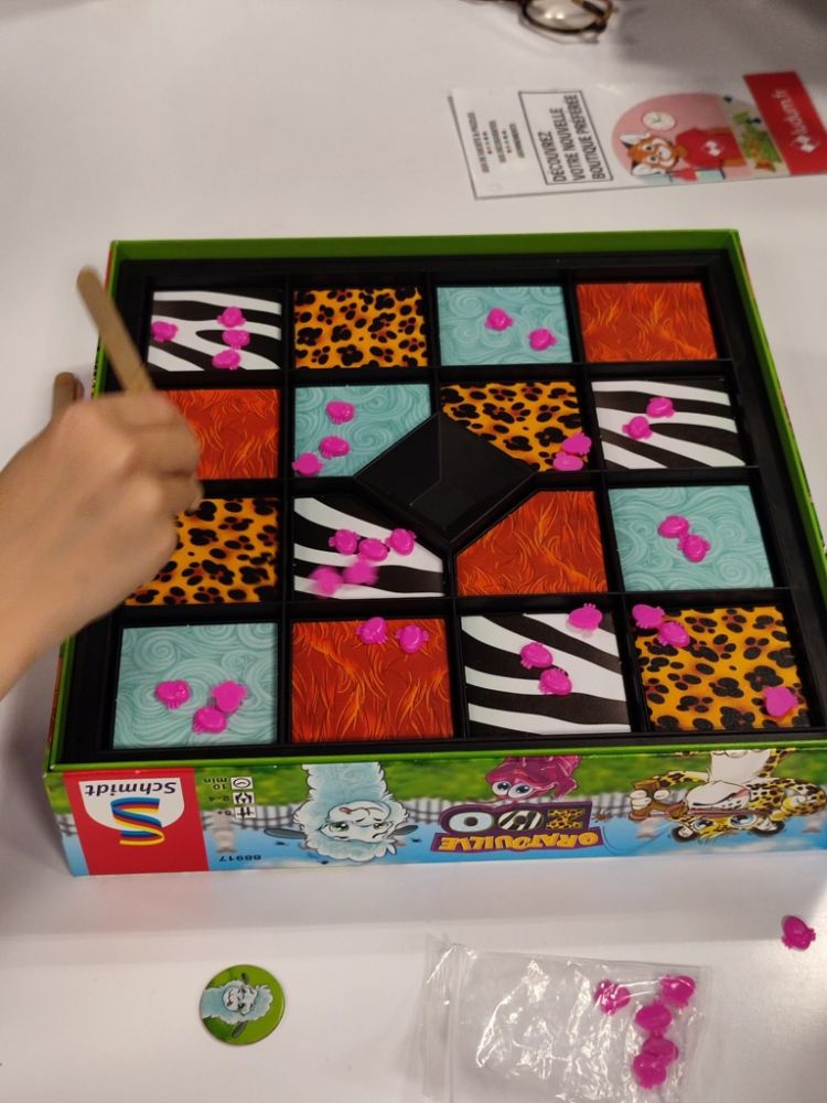 Je monte à l'étage pour faire un petit coucou aux 3 rourétans. Je les retrouve en train de terminer une partie de la Planche des pirates le jeu de Florian Siriex chez The Flying Games nommé cette année dans la catégorie Enfant.