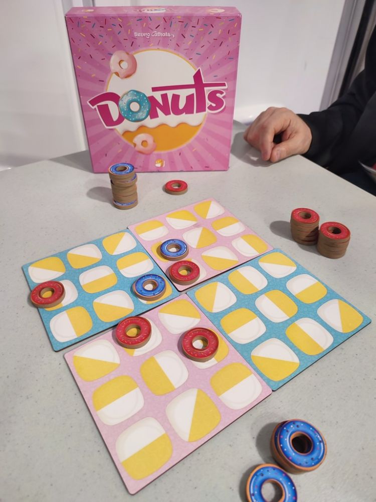 Malgré des règles inchangées, le thème chosit et les nouveaux visuels du jeu me laissent plus que perplexe. Je trouve que les ronds troués ne sont pas assez grands et surtout que les 4 plateaux modulaires manquent franchement de visibilité. C'est vraiment dommage pour ce jeu abstrait 2 joueurs qui demande de la réflexion et de la concentration. Il faut être exigeant sur les coups à anticiper pour gagner une partie et une fois les ronds posés on ne voit plus les directions !!! Quant au choix du thème bah voilà quoi... des donuts ???