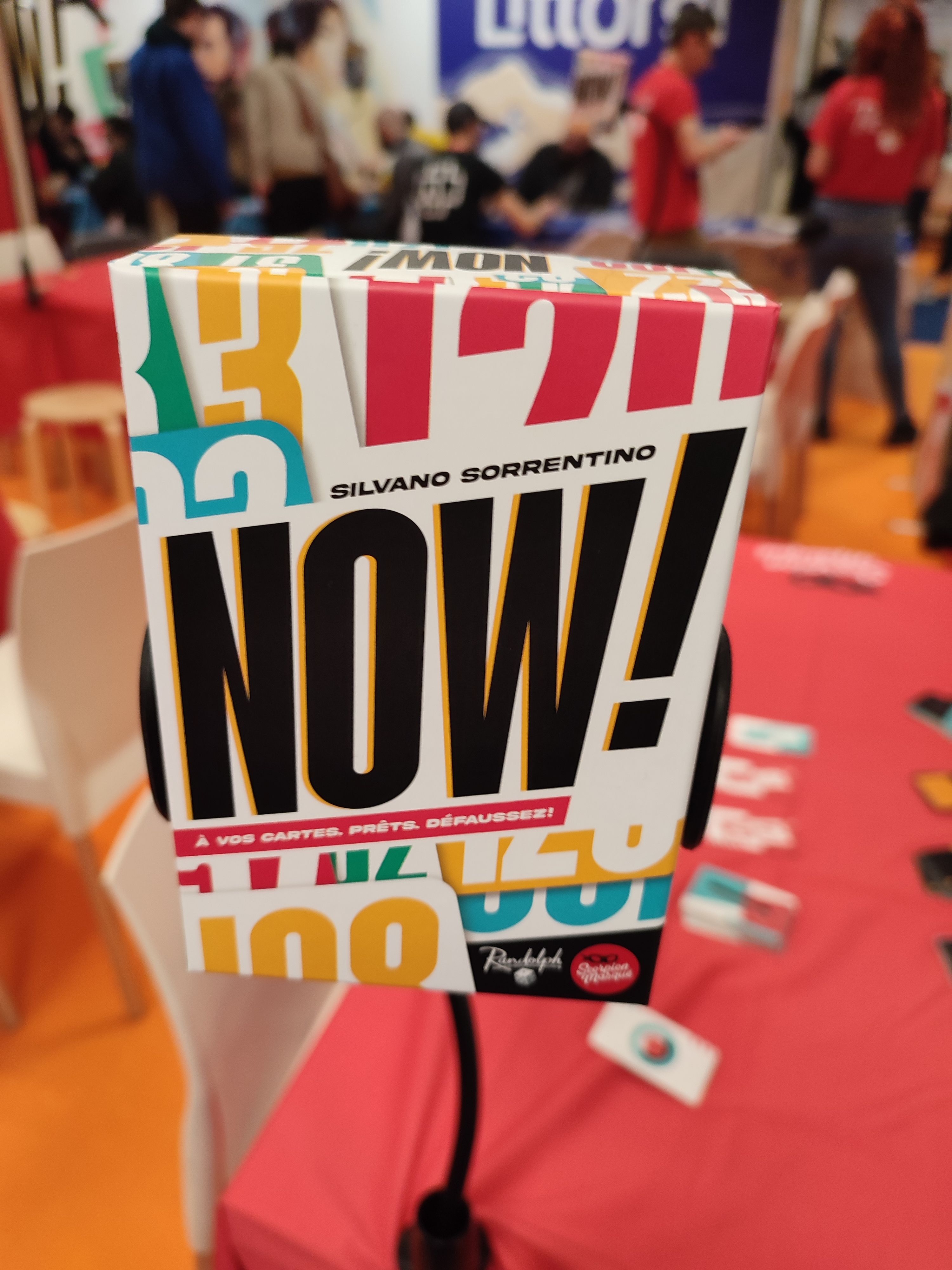 Je reste chez Scorpion Masqué pour jouer avec deux sympathiques joueuses au jeu NOW! présenté en avant-première au FIJ. C'est un jeu de Silvano Sorrentino (auteur des petits jeux Decktective chez Super Meeple) illustré par Fanny Saulnier. Sortie prévue en avril pour un jeu coédité avec Randolph.