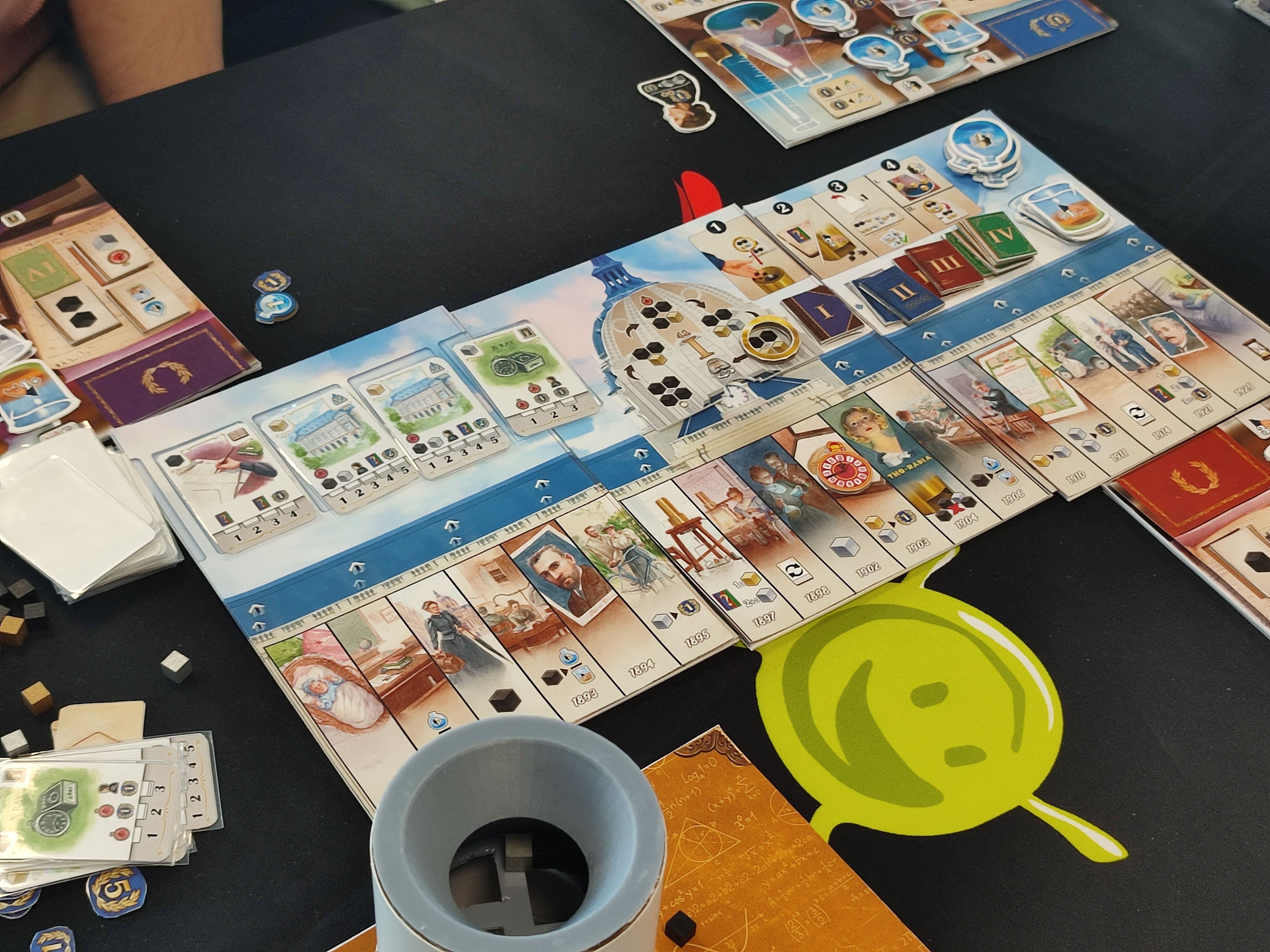 Après le repas je profite d'être déjà dans les étages pour monter au 5ème chez Gigamic pour découvrir le matériel du proto de Sur les traces de Marie Curie le futur jeu de Florian Fay.