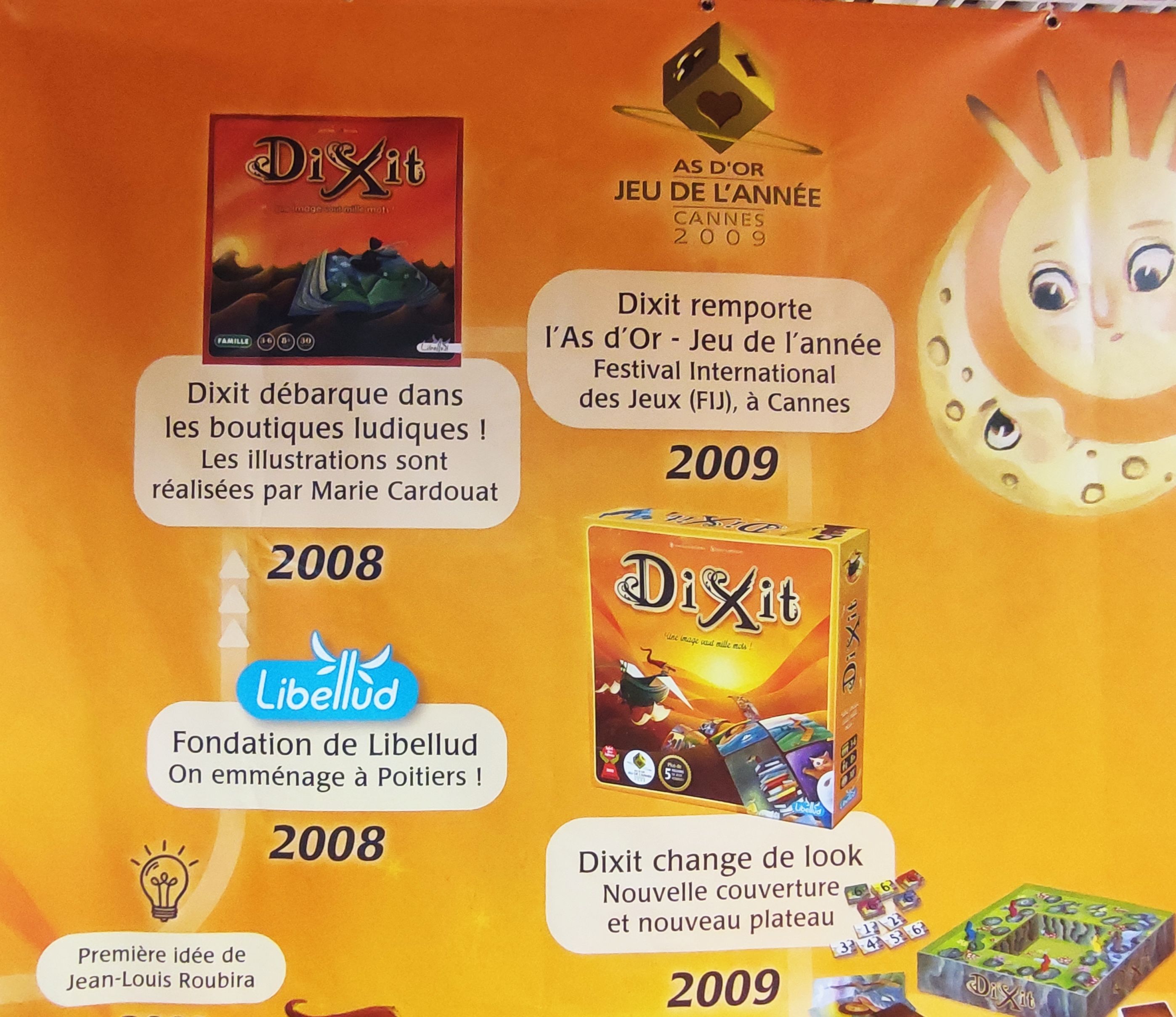 Un parcours impressionnant pour un petit jeu qui arrive en boutique en 2008 sur une idée de Jean-Louis Roubira, un pédopsychiatre, et qui déboule sur un tout petit stand nommé Libellud sur le salon avec 2 tables et une dizaine de chaises. Première partie au hasard car une table se libérait et ce jeu est une évidence... avec la classe et le talent des cartes illustrées par Marie Cardouat !!!