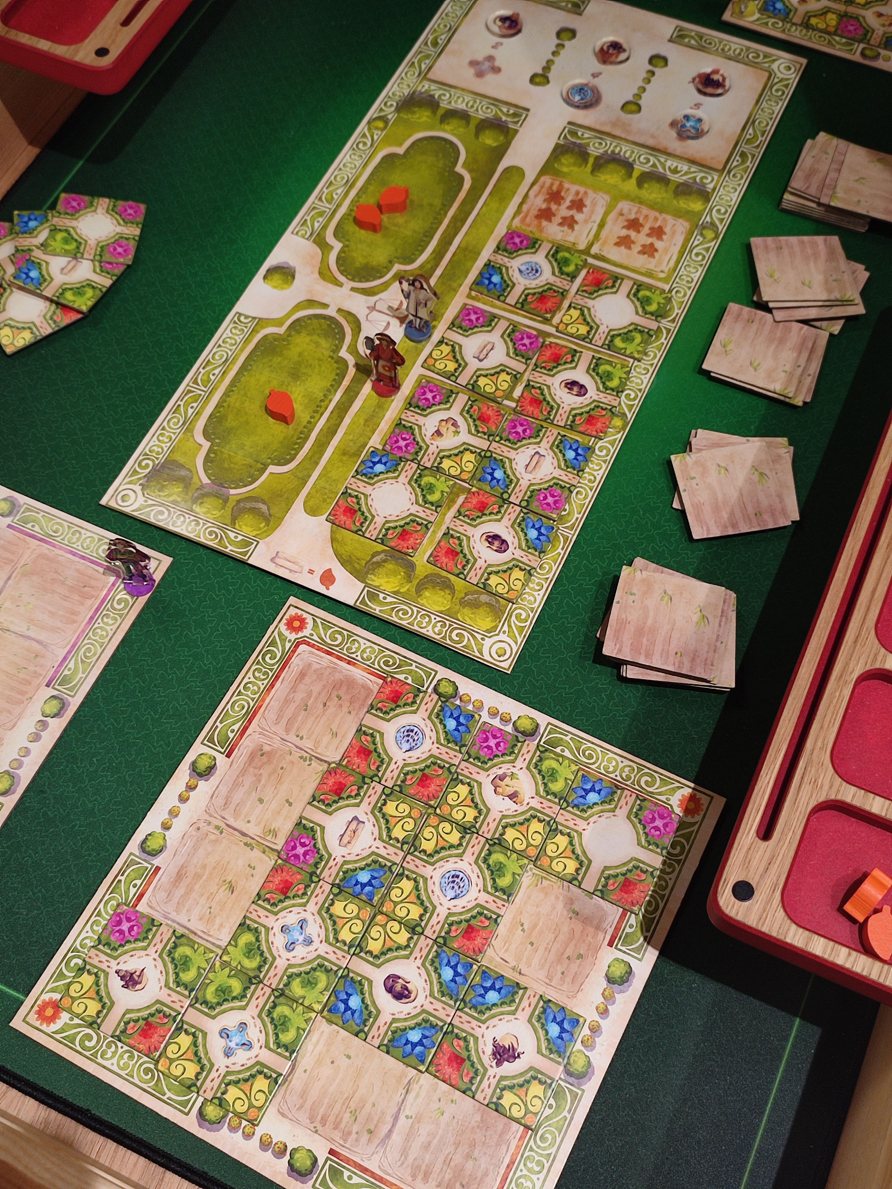 Très attiré par le jeu (mais beaucoup moins par le jeu Shuppa présenté sur la table voisine) en ayant vu le nom des 2 auteurs sur la boite : Versailles Garden est co-écrit par Fabien Gridel (Turing Machine, Path of Civilization) et Nicolas Oury (Mykérinos... 2006) qui ressort du bois !!!. Sortie prévue 2024.