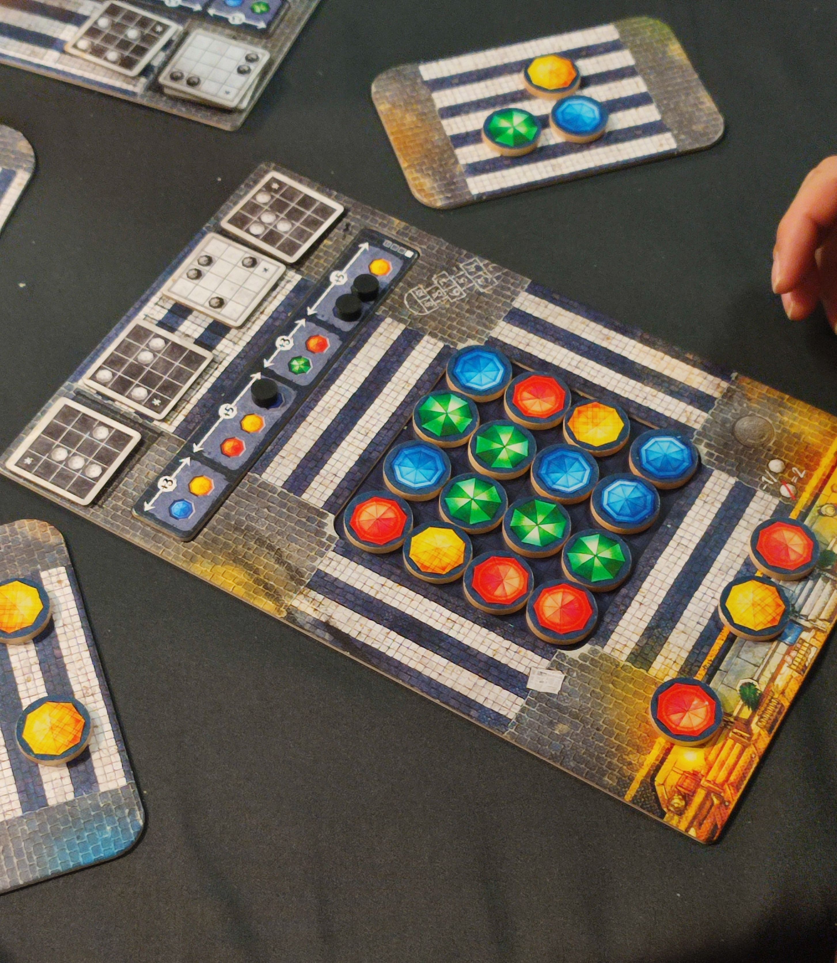 J'ai la chance de partager cette partie avec Amandine Girard-Koni, illustratrice pour Lorcana, qui avait été attirée par les illustrations du jeu de Martin Mottet (The Magnificent, Revive, Evenfall...) et une autre personne de chez Ravensburger.