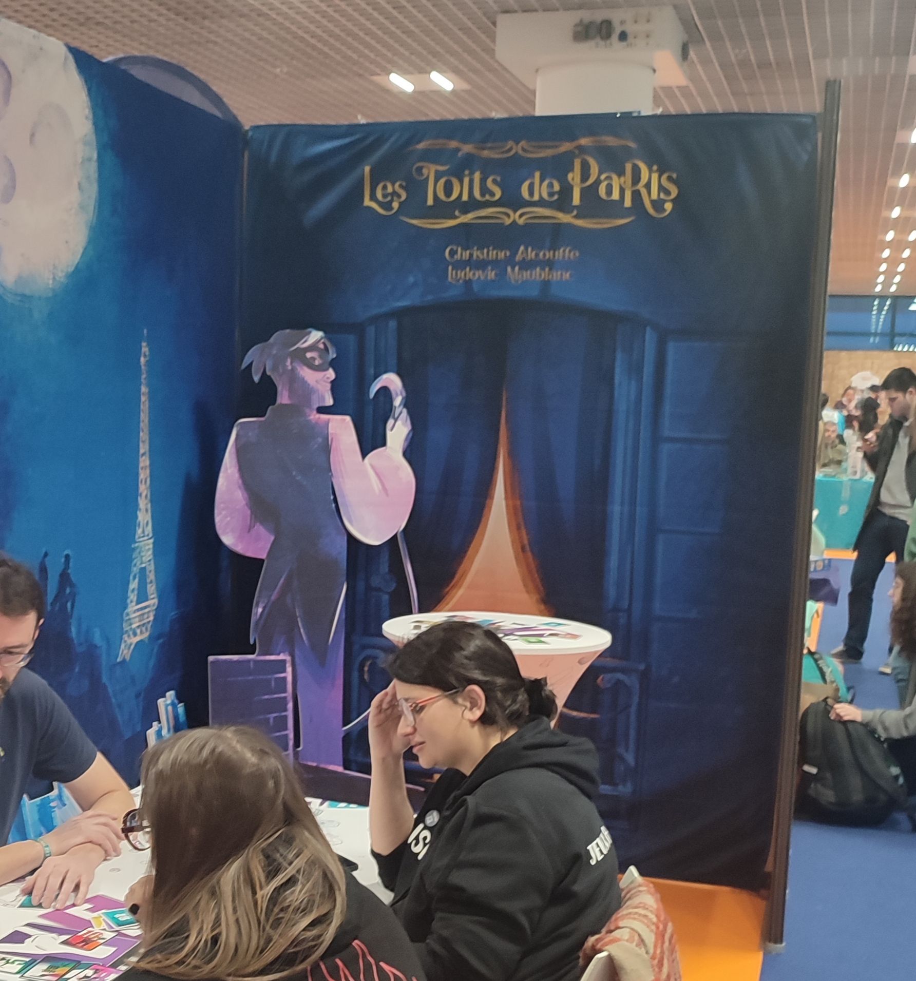 - la nouvelle circulation avec le mélange de jeux enfants/adultes : on remarquait des tables où les parents jouaient alors que leurs enfants s'ennuyaient un peu ou regardaient leur téléphone (!) En échange il semblerait que cette nouvelle circulation soit bénéfique pour les éditeurs qui ont vendu plus de jeux cette année...
