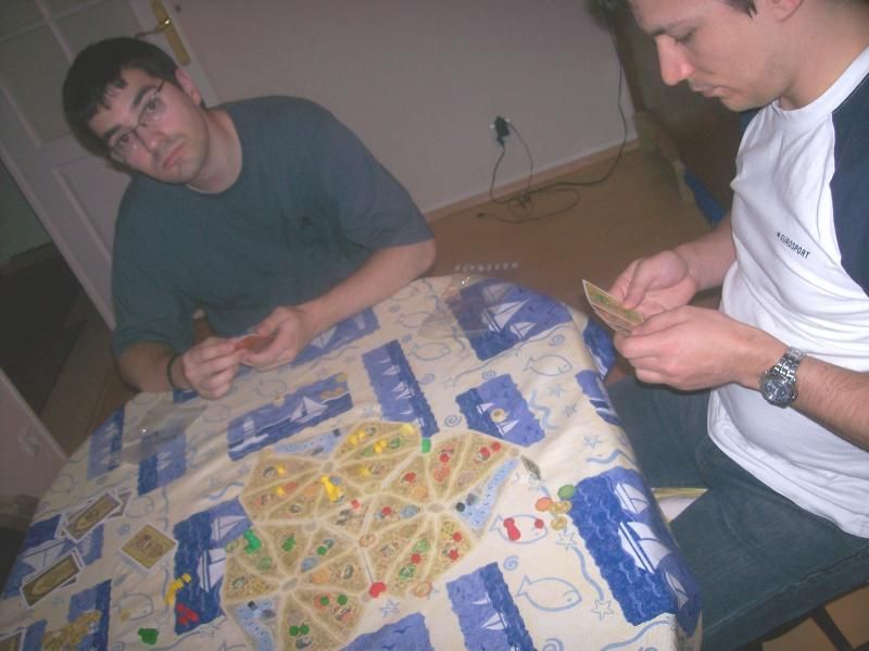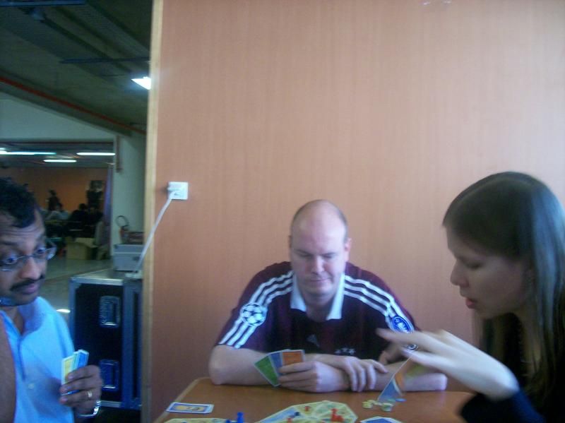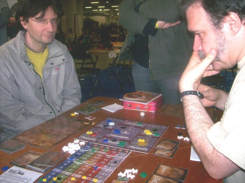 Mr petezahh à gauche et Mr Helderou à droite qui jouent avec moi le premier soir de la Gencon (on ne dormira que deux heures...)
