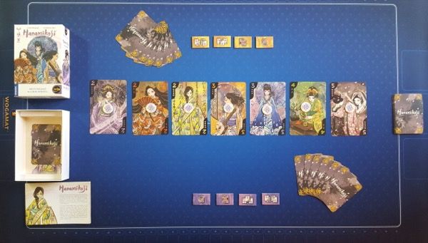 Iello agrandit encore sa belle gamme de mini jeux en localisant le très attendu Hanamikoji. Paru initialement au salon d 'Essen en 2013, le jeu à deux de l'éditeur taïwanais Emperor S4 était difficilement trouvable par chez nous.