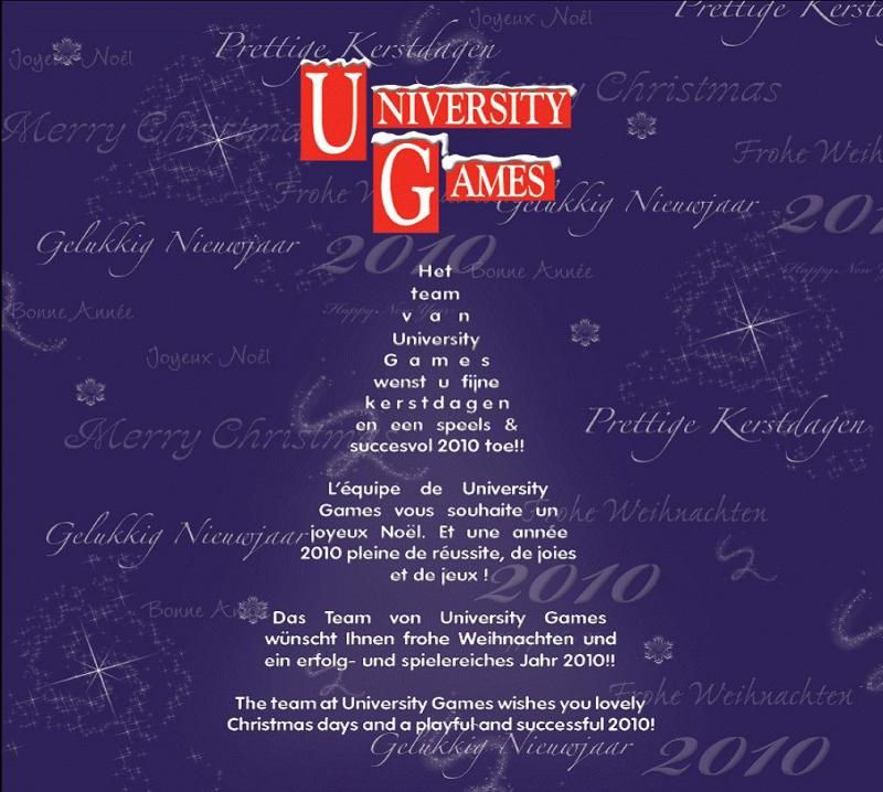 Un bel arbre arbre de Noël compose ici les vœux de University Games.