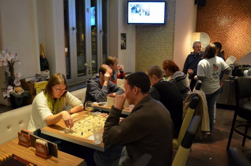 Voici mon antre pour la soirée (enfin je n'étais pas la seul animatrice non plus :p) Dans un petit café, le Bo'Douin, des jeux pour deux joueurs ont envahit les petites tables.