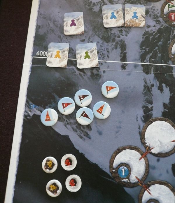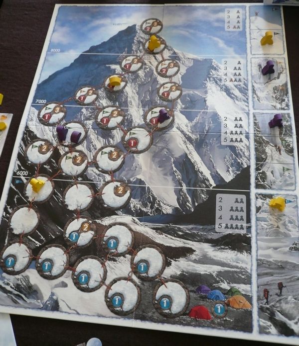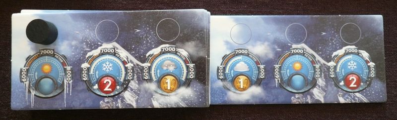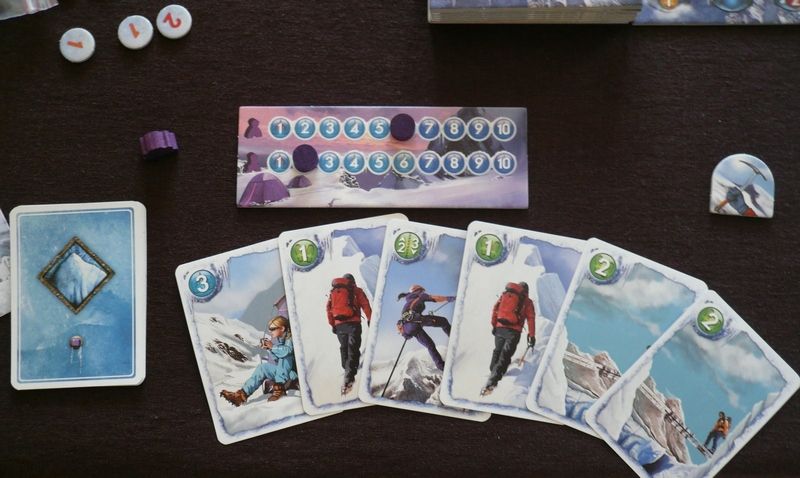 Chaque joueur possède deux alpinistes qu'il faudra faire grimper au gré de ses choix de cartes tout en maintenant leur niveau d'oxygène normal...
