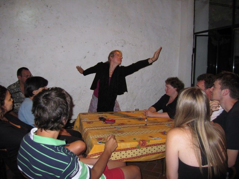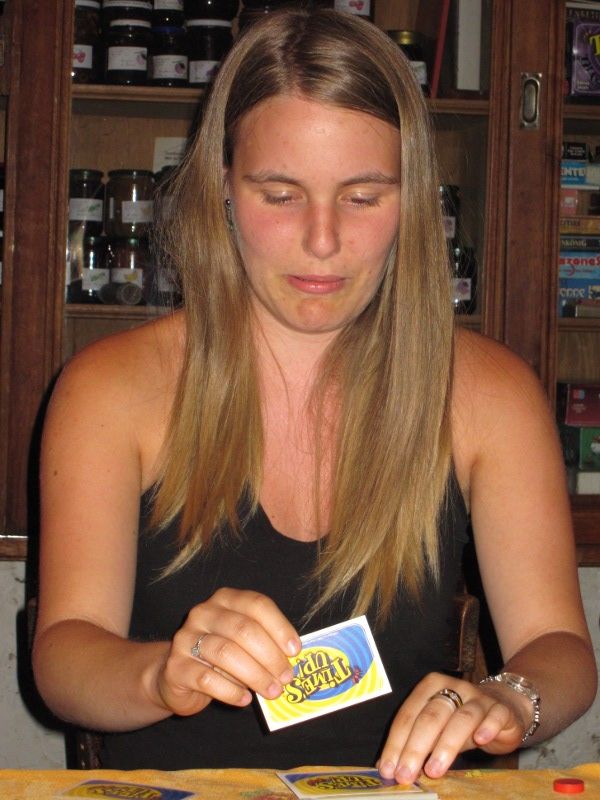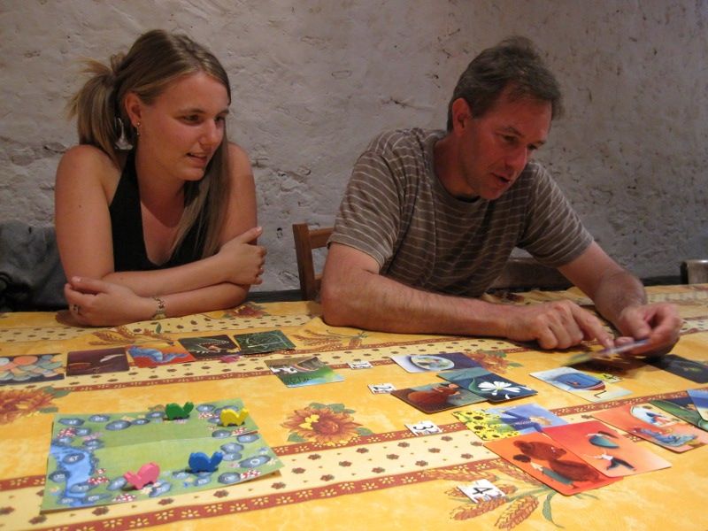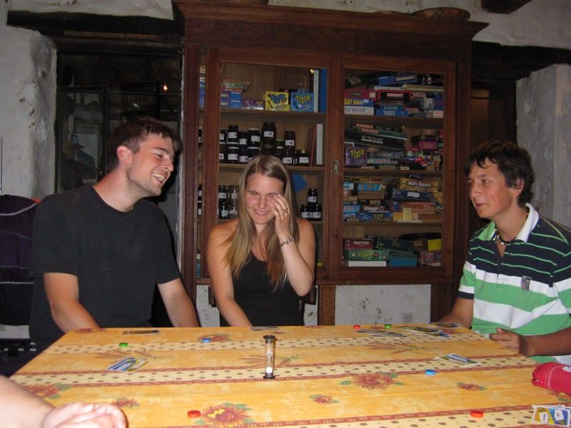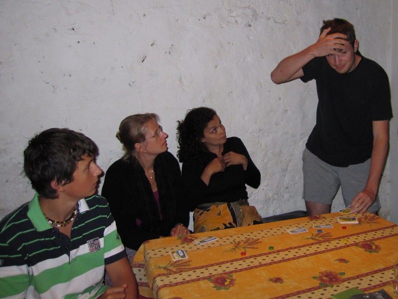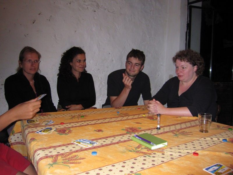 Après le repas, une partie de Dixit avec notamment Rebecca et Miguel.