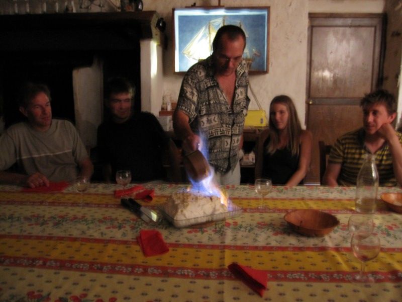 C'est que Pierre est en train de faire flamber l'omelette norvégienne.