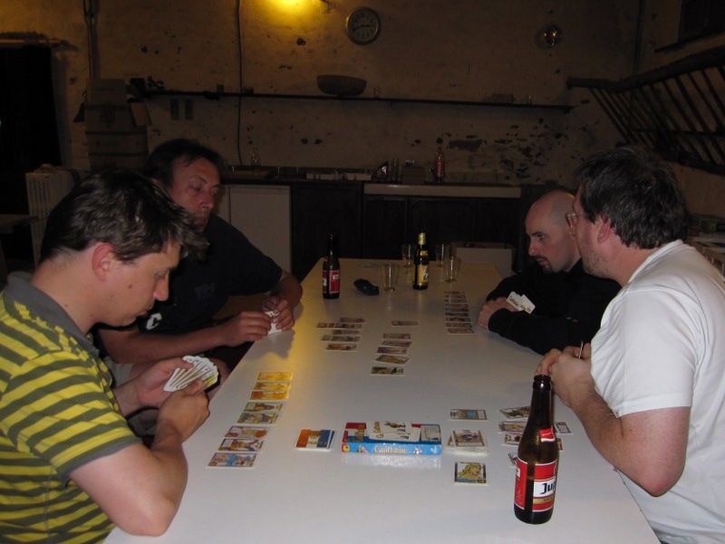 Nous étions une vingtaine (essentiellement des namurois, mais également une marseillaise entre autres) présents pour ce week-end de jeux et de gastronomie, entrecoupés de quelques brasses dans la piscine. Et nous avons bénéficié d'un large ciel bleu ensoleillé pendant ces trois jours.
