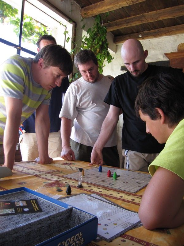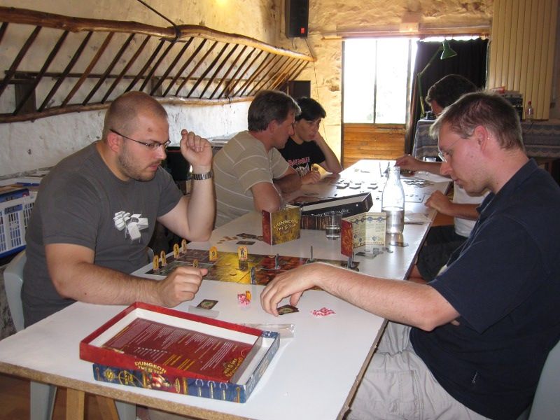 A l'extérieur, ça joue à Dungeon Twister aussi, mais sur le proto de la future boîte.