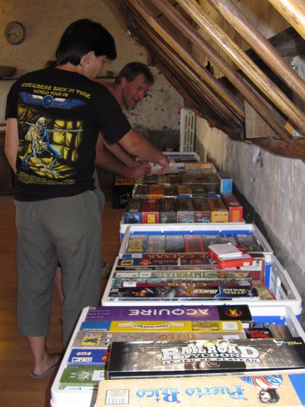 Durant ce week-end, j'ai joué à Mölkky (5x), Race for the Galaxy (7x), Dixit, L'escalier hanté, Go West, Palazzo, Pandémie, Ave Caesar, Time's up! (2x), Patrizier, Tinners' Trail, Bombay, Looping Louie (plein de x).