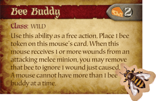 Et puis, en bonus, vous pouvez voir une des compétences que peut avoir notre gecko en montant de niveau. Cette carte vous permet d'éviter une blessure grâce à une abeille qu'il a préalablement récupéré (pour une action gratuite).