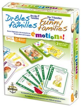 Inspiré du populaire "jeu des sept familles", Drôles de familles représente sept émotions de base (les familles Fière, Boudeuse, Triste, Fâchée, Gênée, Stressée et Heureuse).