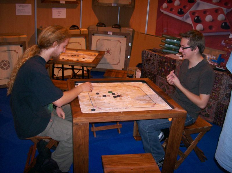 On peut même jouer au Carrom sur des tables de bistrot maintenant.