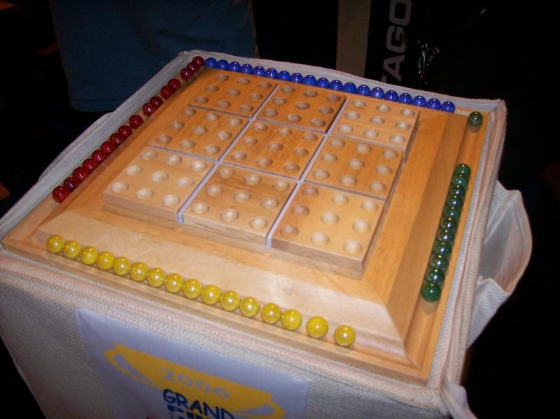 Au passage, on salut la performance d'un de nos vainqueur du concours pour obtenir une place gratuite, qui terminera second de sa poule lors du tournoi de Carrom pour ensuite se faire éliminer par une équipe qui faisait 3 ou 4 bandes avant de rentrer le palet de son choix ...
