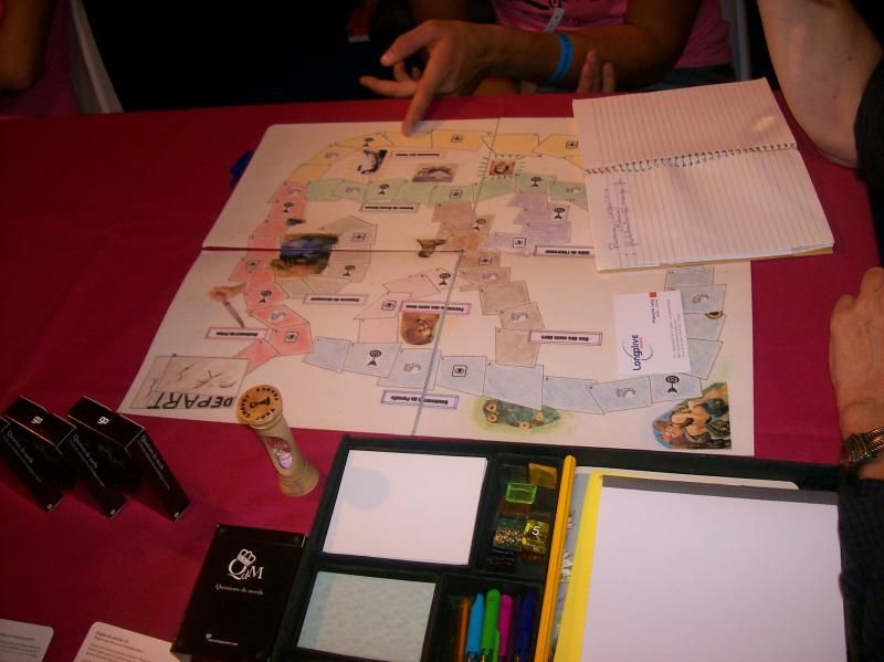 Je n'ai pas pu en discuter car les personnes attablées étaient en discussion sur ce prototype (le nom proposé actuellement n'étant pas assez accrocheur) qui apprendrait le bon français aux joueurs...