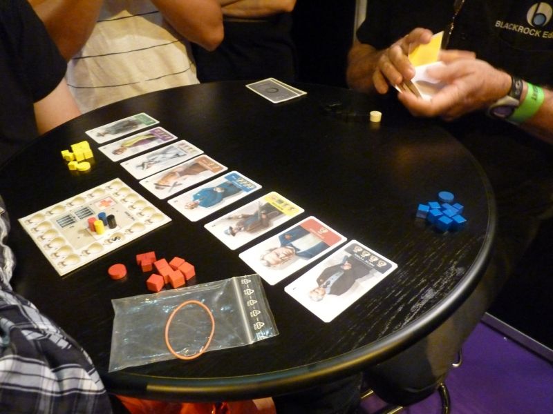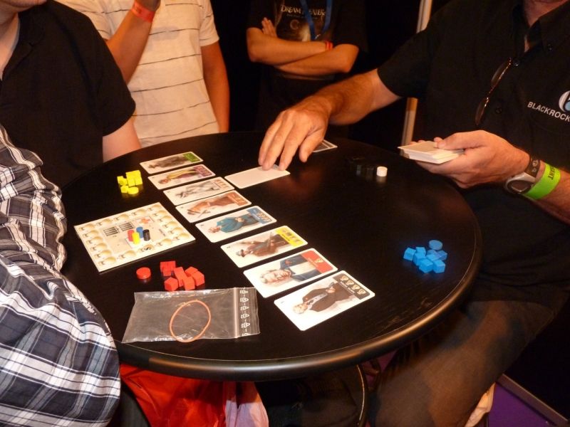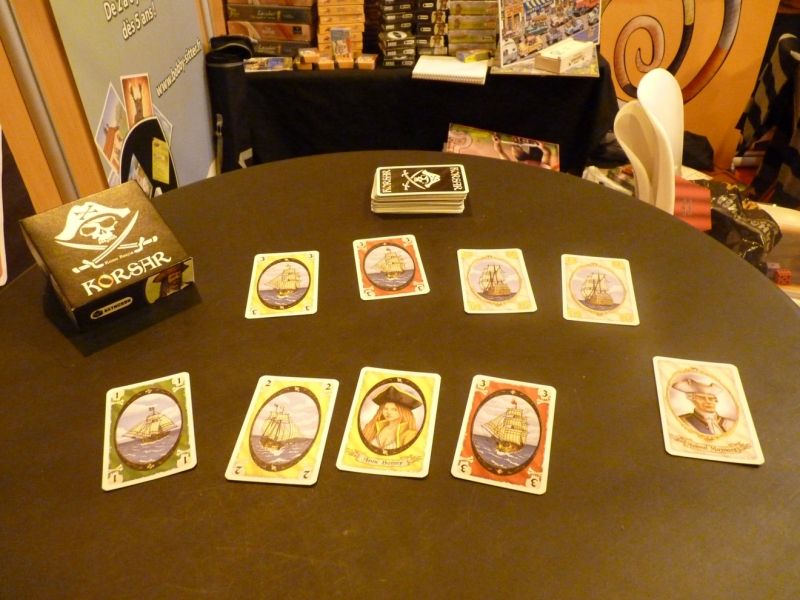 Sur le stand de Blackrock éditions, on a vu des auteurs présenter leurs protos (pas de photo de ces derniers en ligne pour le moment, à leur demande). Mais il y avait aussi les jeux de l'éditeur (Huuue!, Garçon, Strada Roman, Leader One, Zero) et le tout récent Korsar.