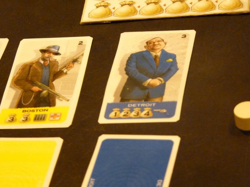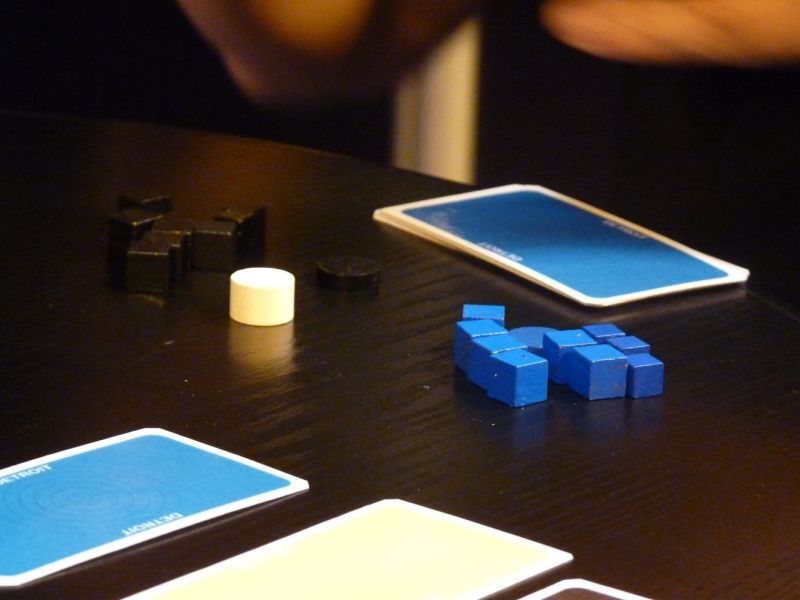 D'abord, face cachée, une carte sous chaque ville, sur laquelle est marquée ce qu'obtiendra le joueur majoritaire. Ca peu être aussi bien positif que négatif.