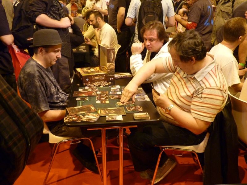 Des joueurs en train de jouer à Warhammer invasion.