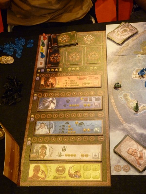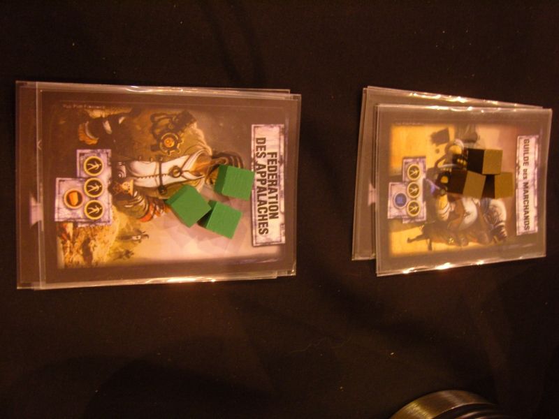 Chaque joueur a son plateau individuel (tous ont des capacités différentes). Les cartes qu'il va collecter sont généralement placées devant ce plateau.