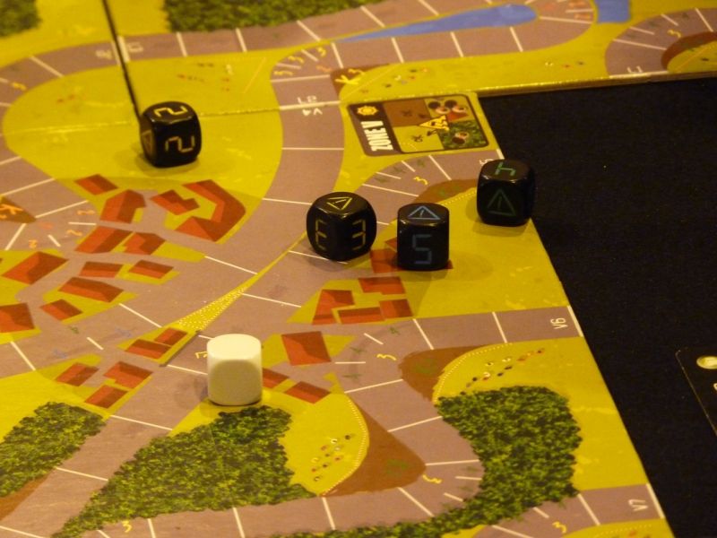 Le dé blanc c'est le dé : "je gagne en un coup sans que t'ai rien compris".