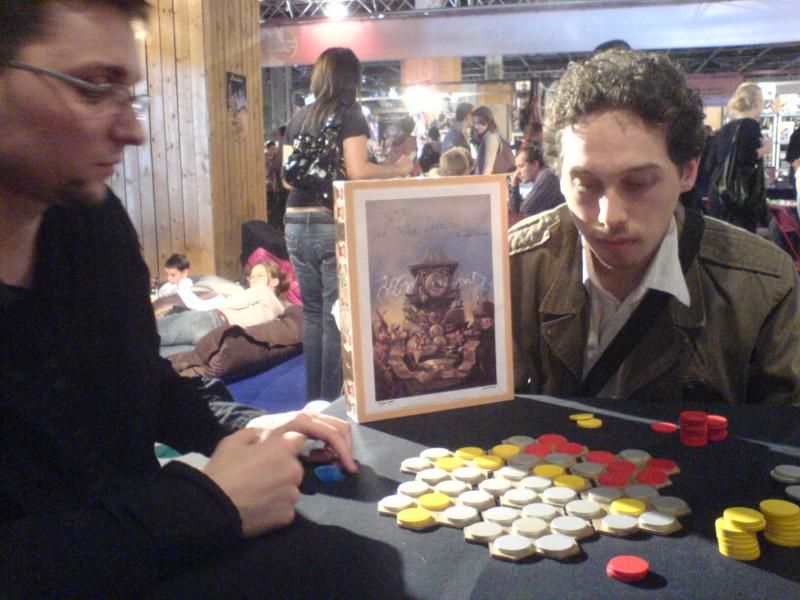 Et la partie test du jeu, où l'on voit à gauche Jérôme Mercadal (auteur) et Loïc_425 (de jedisjeux.net ) en pleine réflexion !