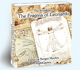 Dans Enigma of Leonardo, second jeu de l'éditeur russe RightGames annoncé pour Essen (le jeu date de 2007, mais l'éditeur profite du salon pour nous faire découvrir certains de ses titres) après The Kingdoms of Crusaders, chaque joueur reçoit dix cartes au début du jeu et en place cinq de façon à former une croix devant lui. Toutes les cartes sont placées face cachée sur la table et vont être dévoilées simultanément. Chaque carte a deux symboles de clé dans son coin supérieur gauche.
