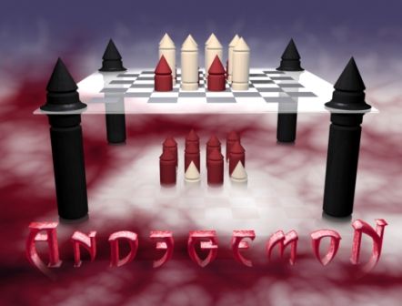Andegemon est un jeu abstrait, qui se joue sur deux plateaux de jeu où deux armées s'affrontent : les blancs et les rouges, représentant les anges et les démons. Chaque armée est composée de deux types de pièces. Pour les blancs, on a les anges et les angelots. Les rouges sont eux représentés par les démons et les diablotins. Le plateau du haut représente le paradis et celui du bas, les enfers.