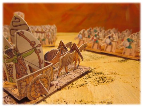 Probablement qu'il s'agit ici d'un wargame avec des figurines en carton, un peu comme les jeux de Wizkids Pirates Of The Spannish Main, ou encore le jeu de vaisseaux star wars.