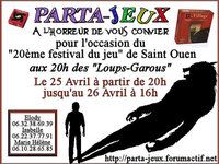 L'association Parta-Jeux organisera les 20h des "Loups Garous" qui auront lieu au Festival du jeu de Saint Ouen le weekend du 24/25 avril.